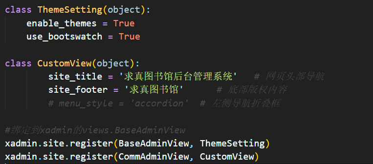 Django的app并修改app中增加adminx.py文件,可以把原admin.py拷贝一份然后重命名为adminx.py(必须名为adminx.py),在集成xadmin之后,admin模块其实就可以不要了,可以将原admin的代码注释或删掉。