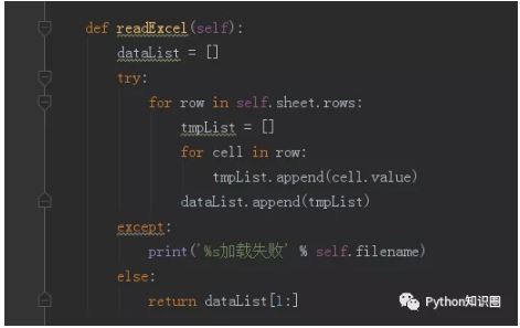然后我们写一个读取 Excel 数据的方法,读取数据后返回数据列表,以便之后调用获取对应的数据,因为第 1 列数据是序号,所以直接返回第 2 列之后的数据。