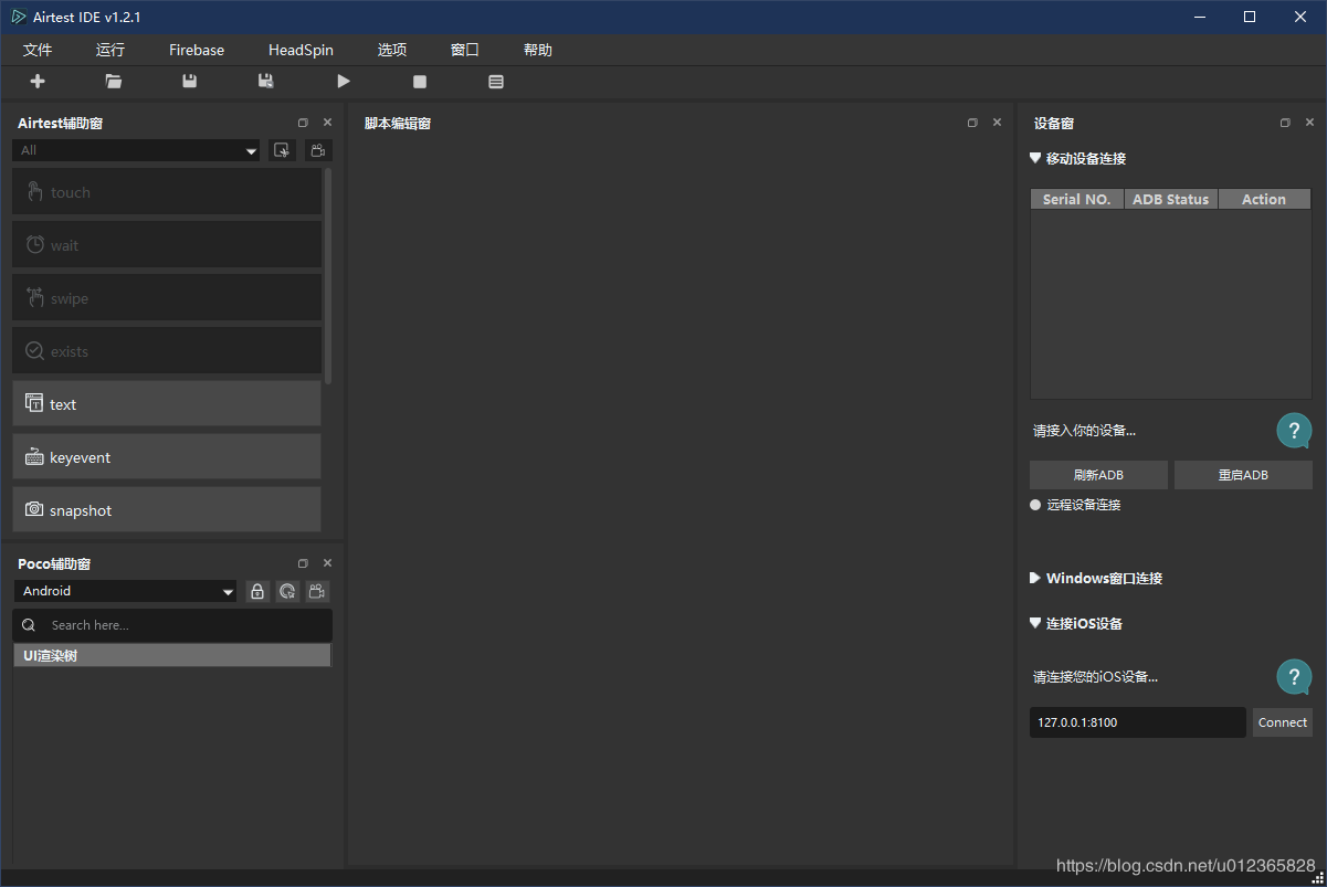 下载之后,解压打开就可以使用,Airtest IDE的界面如下: