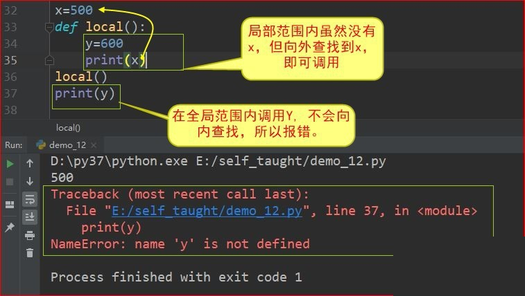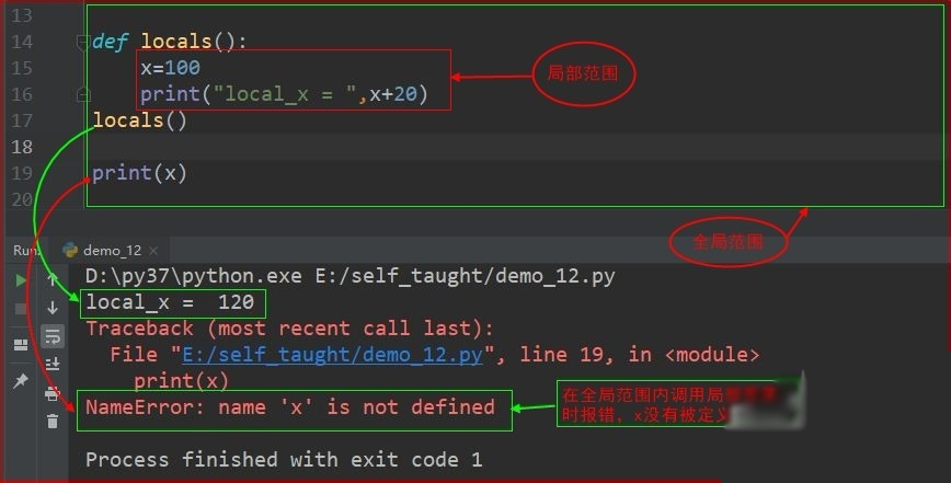 所以局部变量x仅在函数内使用。在其他地方调用时错误的。