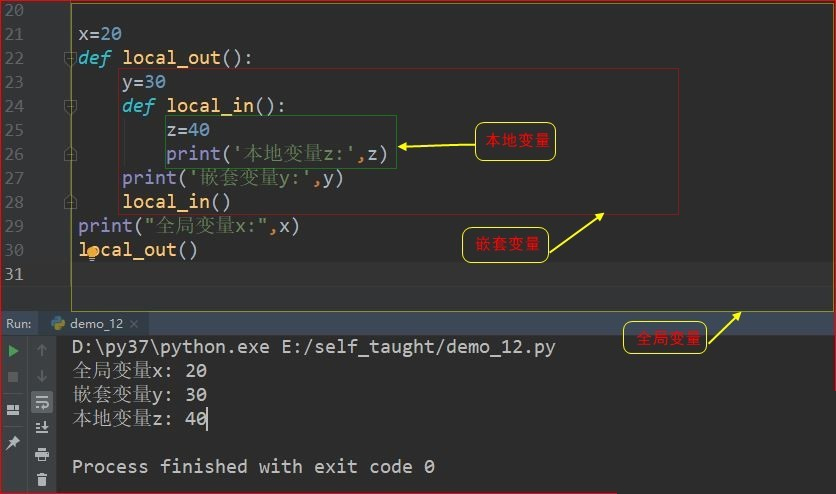 它们的范围是有小到大是这样排列的,Local----Enclosed----Global----Built-in,而且上层套下层: