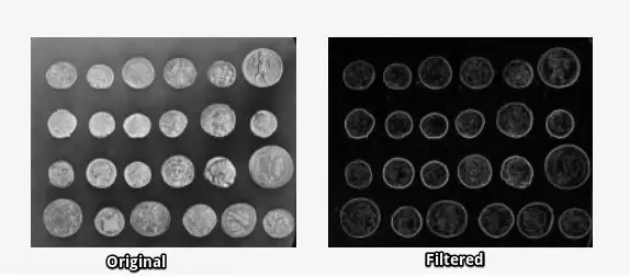 import matplotlib.pyplot as plt %matplotlib inline from skimage import data,filters image = data.coins() # ... or any other NumPy array! edges = filters.sobel(image) plt.imshow(edges, cmap='gray')