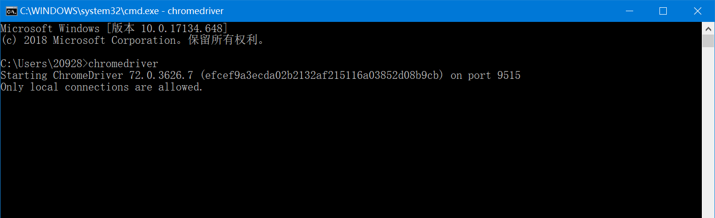 完成后在cmd下输入chromedriver验证是否安装成功:
