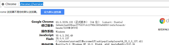 1.打开chrome 输入 “chrome://version/”来查看chrome版本 如图我的是63