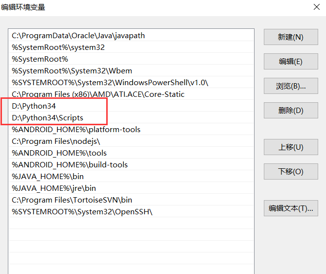 比如python安装在D:\python34,那么就在环境变量path中加上此目录;