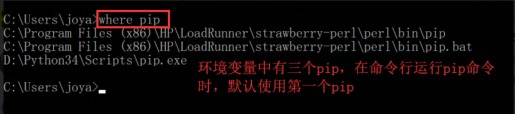 移动完成,保存之后。如果移动成功,再使用where pip命令,第一条显示的是D:\python34\Scripts\pip.exe。否则就表示你没有处理成功哦!!!