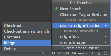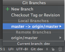 通过右下角的checkout可以自如的在dev和master分支上切换