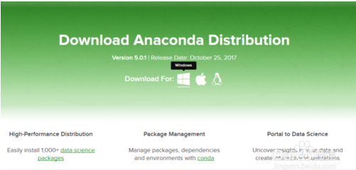 Anaconda 官网下载地址:https://www.anaconda.com/download/点击进入。Anaconda 是跨平台的,有 Windows、macOS、Linux 版本,点击那个 Windows 图标。