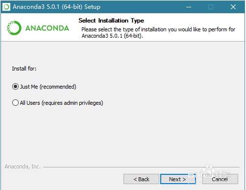 Install for: Just me 还是 All Users ,假如你的电脑有好几个 Users ,才需要考虑这个问题.其实我们电脑一般就一个 User,就我们一个人使用,公司的话可能一台电脑好几个人用会有几个 User,需要考虑是只给当前用户安装还是给所有账户安装,我这里直接 Just Me ,继续点击 Next 。