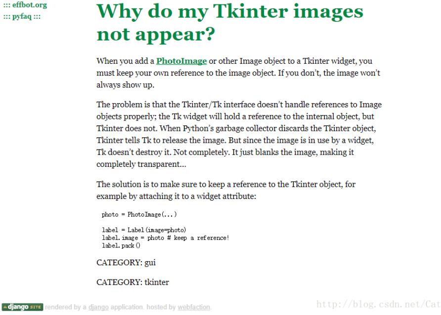而由于本人才疏学浅,对于造成这种现象的原因尚不理解。不过那名外国回答者也给出了这样修改的原因,在 http://effbot.org/pyfaq/why-do-my-tkinter-images-not-appear.htm 上对于为何要keep a reference做出了详尽的解释。