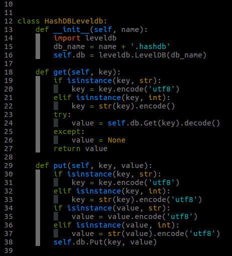 这两个类都具有get()和put()两个方法,如果你想用Redis或MySQL等其它数据库来实现HashDB,可以参照这两个类的实现进行实现。