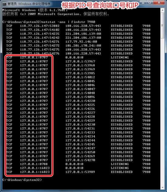 2.命令行窗口查看 在命令行窗口查看时,可以先查看软件的PID,再通过PID查看端口号: