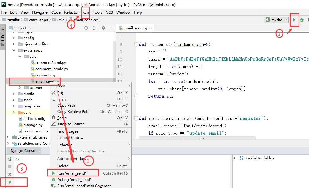 在pycharm里面,我们不用借助windows下的cmd来运行程序了,pycharm直接提供了运行功能。在编写好程序之后我们有三种方法可以运行: