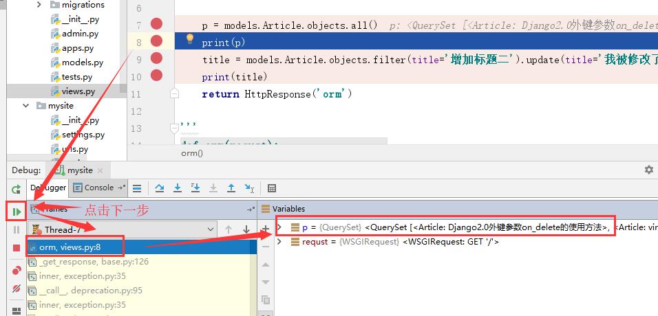 点击Step Over或者按F8,我们继续往下运行,到下一个断点,右边则显示当前行的信息!