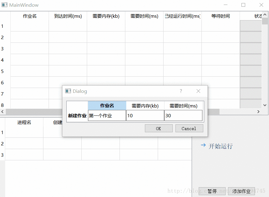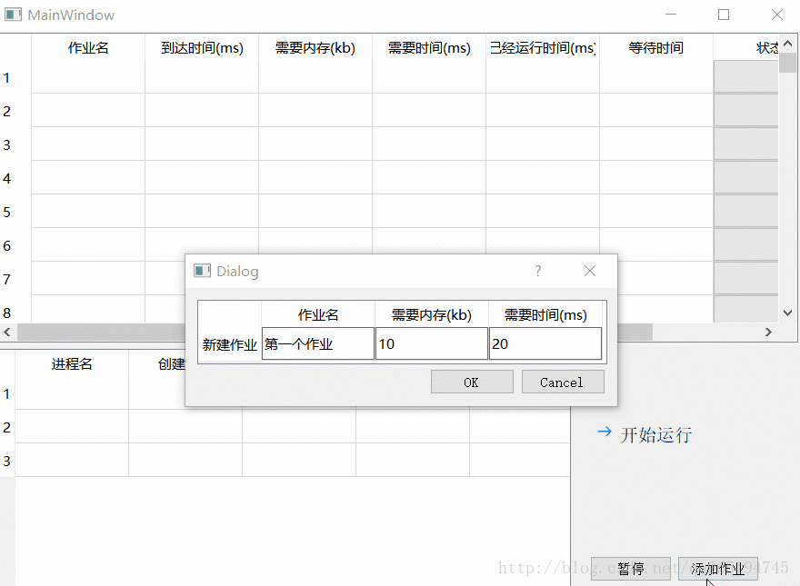 为了做出对比,我将作业名的表格填写改成table.setItem的方式,其他格子用信号量机制,可以很清楚的看到问题所在!!!!