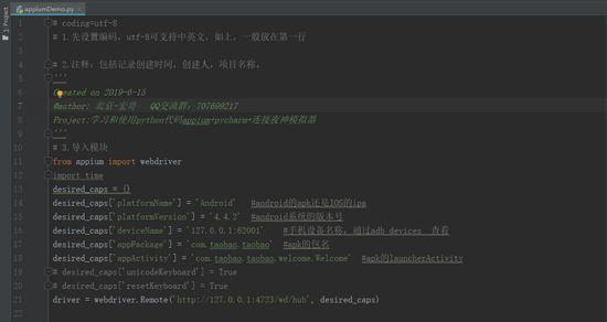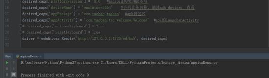 driver = webdriver.Remote('http://127.0.0.1:4723/wd/hub', desired_caps) ##启动服务器地址,后面跟的是手机信息