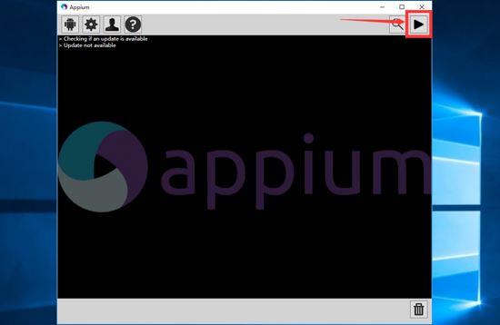 2、打开appium并点击右上角三角符号,如下图所示