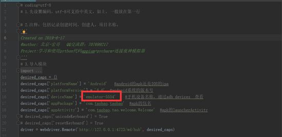 desired_caps['deviceName'] = 'emulator-5554' #手机设备名称,通过adb devices 查看