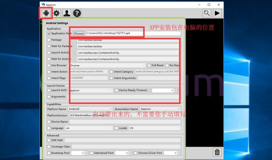 desired_caps['appPackage'] = 'com.taobao.taobao' #apk的包名