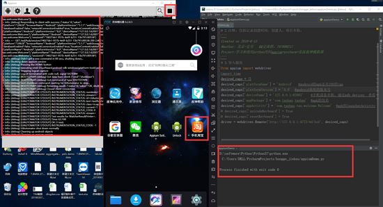 配置好以后,按上边的步骤运行代码,可以看到appium日志没有报错、运行代码没有报错、成功的将淘宝的安装包安装在夜神模拟器上了