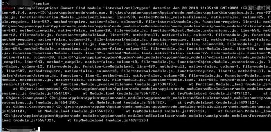 2、遇到的坑1:在CMD指令中输入appium,提示如下图所示
