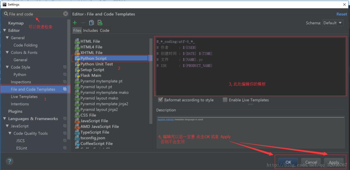 以上所述是小编给大家介绍的Pycharm 新建模板默认添加编码格式-作者-时间等信息【推荐】,希望对大家有所帮助,如果大家有任何疑问请给我留言,小编会及时回复大家的。在此也非常感谢大家对脚本之家网站的支持!