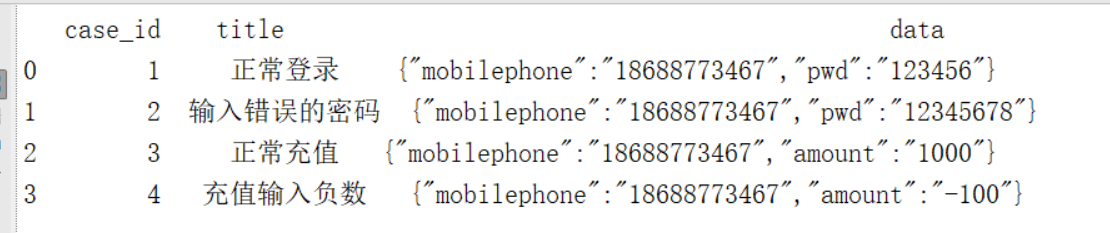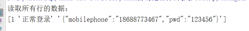 [1 '正常登录' '{"mobilephone":"18688773467","pwd":"123456"}']]