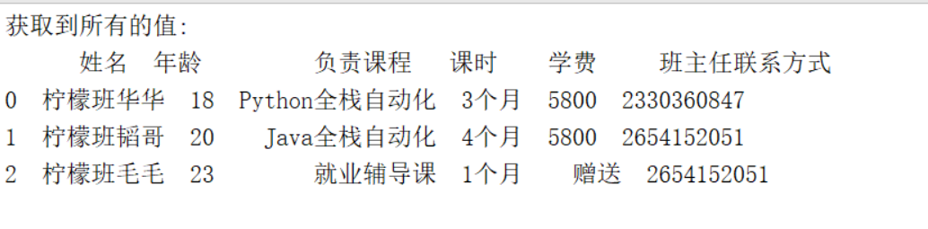 print("获取到所有的值:\n{0}".format(data))#格式化输出