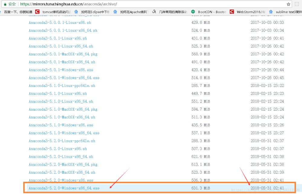 如果觉得慢可以在https://mirrors.tuna.tsinghua.edu.cn/anaconda/archive/下载最新的 如图