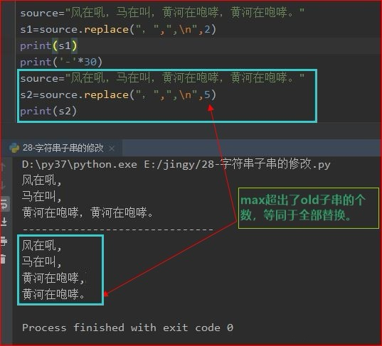旧串换新串:使用str.replace(old, new, max)