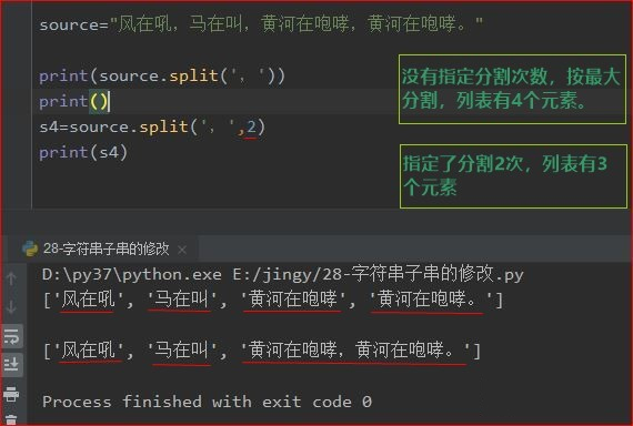 1)字符串调用split函数返回一个由分开的子串组成的列表。