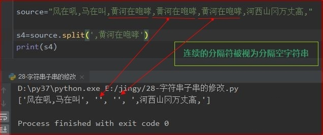 4、连续的分隔符不会被组合在一起而是被视为分隔空字符串 。