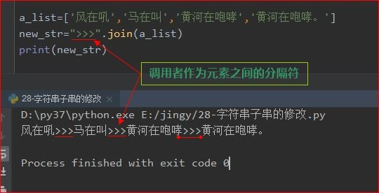 一个字符串调用join函数,将返回一个有这些元素组成的大字符串。