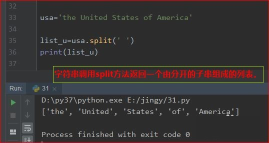 字符串调用split方法返回一个由分开的子串组成的列表。
