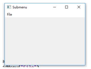 menuBar()方法创建了一个菜单栏。我们使用addMenu()创建了一个文件按钮,并且使用addAction()方法添加一个行为。