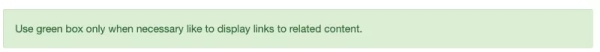 <div class="alert alert-block alert-success"> Use green box only when necessary like to display links to related content. </div>