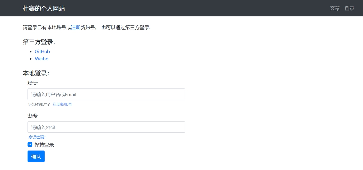 现在我们已经拥有一个可以进行用户本地登录的博客系统了。如果有人欣赏你的文章,说不定就会注册成为本地用户,并和你好好交流一番。