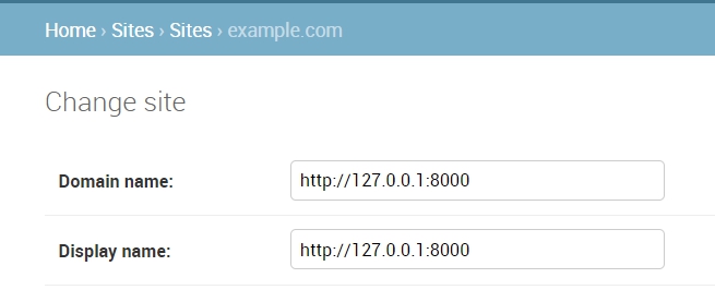 打开Sites,将example.com修改为博客域名。开发时则修改为本地IP: