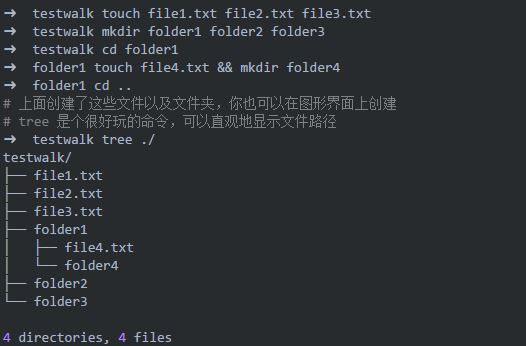我在某目录下创建了testwalk文件夹,里面有file123.txt三个文件,folder123三个文件夹,其中folder1中有文件file4.txt以及folder4