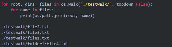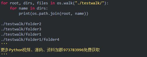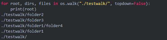 root存放的是当前位置,它会把./testwalk/下所有的文件夹作为根目录,往下搜索