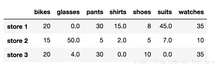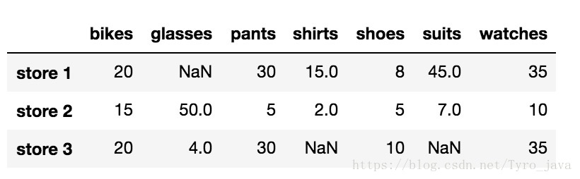 # 删除包含NaN值得任何行 store_items.dropna(axis = 0)