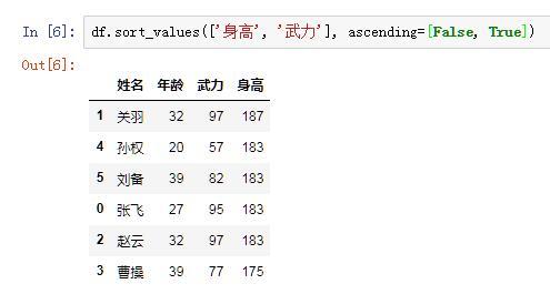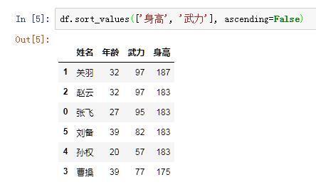 通过这个例子我们可以看到,by参数不但可以传入字符串,还可以传入字符串组成的列表,来实现对多个列进行排序。