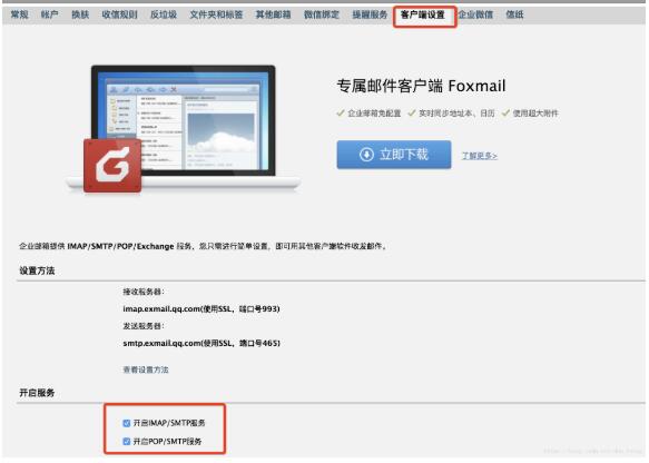 2.确保腾讯企业邮箱中开启了SMTP服务: