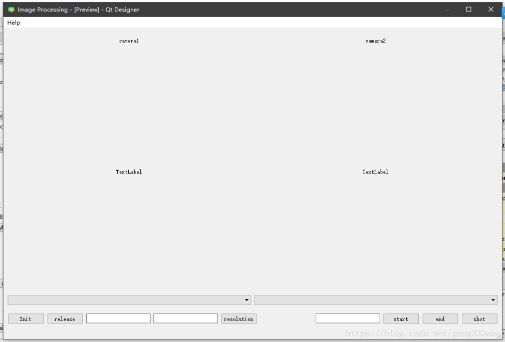 pyqt的界面可以用designer进行构造,这里因为是双目摄像头,我们构造的界面就是这样子的了: