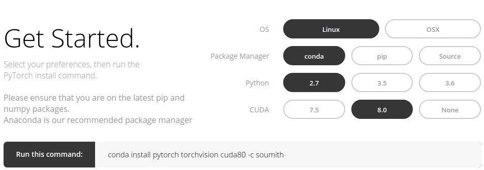 conda install pytorch torchvision cuda80 -c soumith