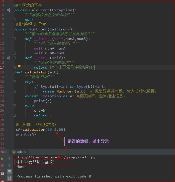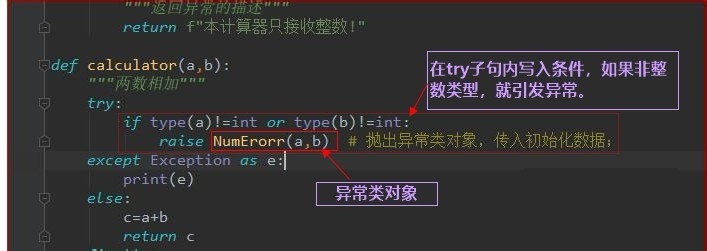 例如:写一个只接收整数的加法计算器,当输入的不是整数时引发异常。