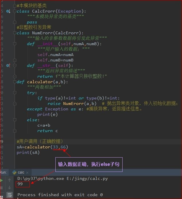 在输入正确的情况下,不会引发异常,执行else子句执行计算。