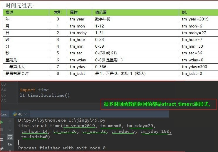 很多时间函数的返回值都是struct_time元组形式。