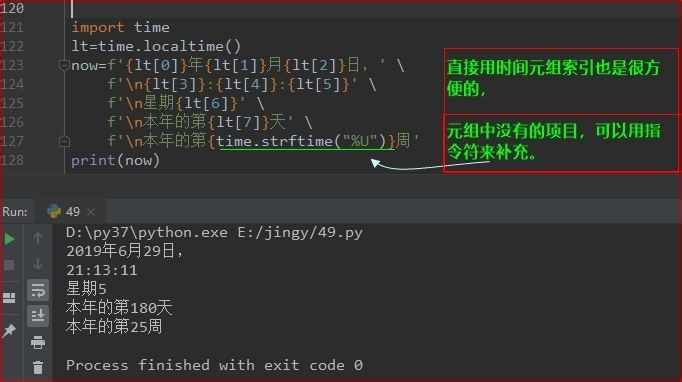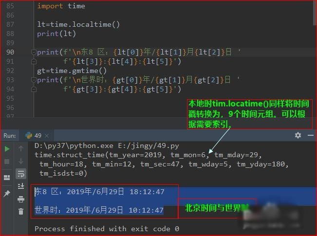 for n in time.gmtime(): print(n,end='/') ---2019/6/29/9/27/39/5/180/0/