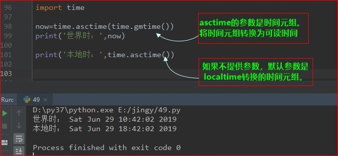 print(time.ctime()) print(time.asctime()) ---Sat Jun 29 19:22:16 2019 ---Sat Jun 29 19:22:16 2019